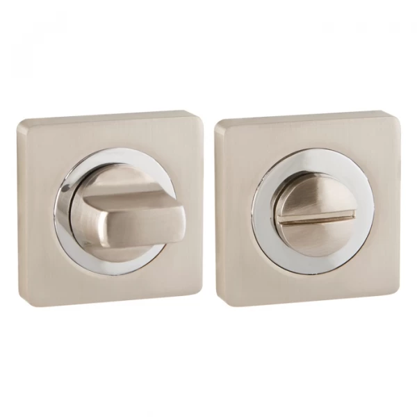 Поворотные ручки на квадратном основании Punto BK6 серии ZQ из коллекции SIMPLE LIVING подходят для установки на внутренние входные и межкомнатные двери. Материал изготовления: ZAMAK (сплав цинка, алюминия, магния и меди). Цвет: матовый никель/хром. В комплект входят: соединительный квадрат 6x80 мм, винты.