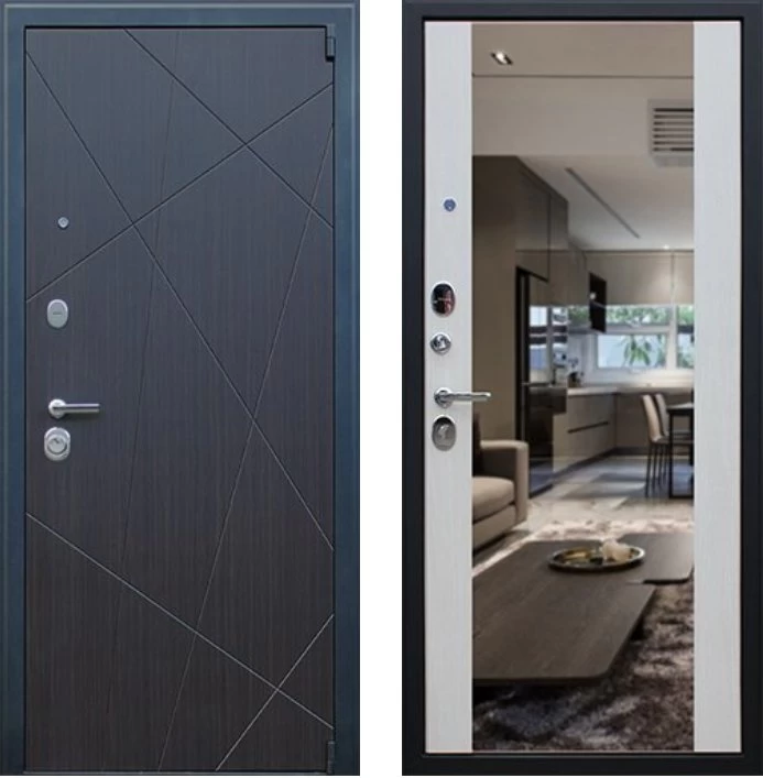 Надежная входная Дверь Вектор с зеркалом премиум класса по цене 49 701 руб. Большая толщина стали защитит от проникновения в ваш дом, квартиру или коттедж. Используется очень качественная фурнитура: замки, цилиндры, ручки, защелки. Покрытие и отделка двери изготовлено под внимательным контролем производителя. Дверь имеет долгий срок службы и гарантию.