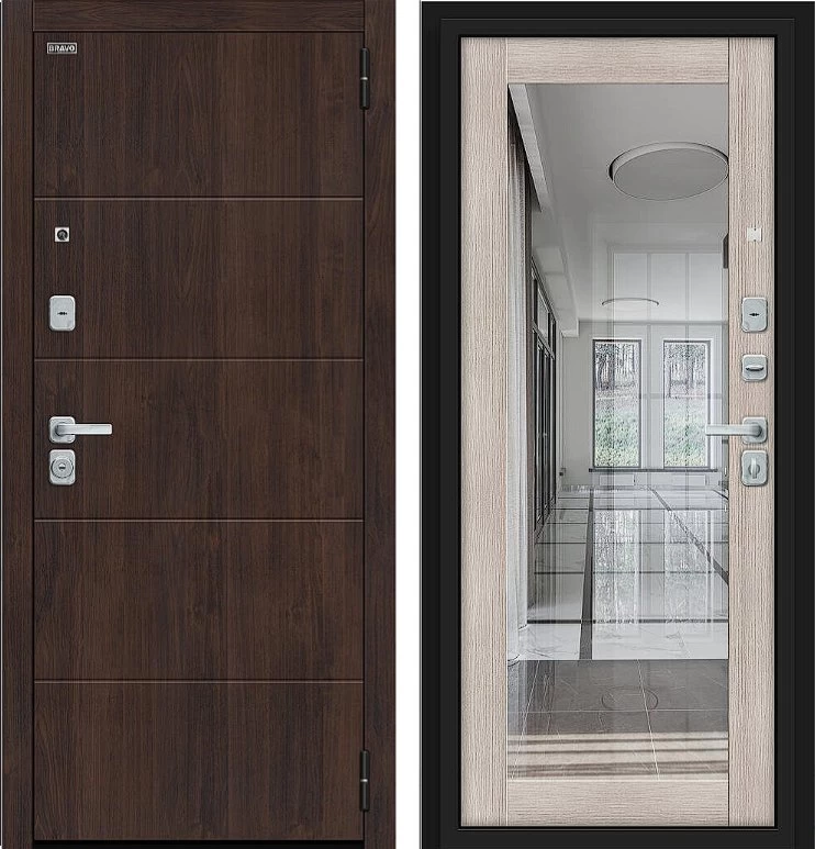 Надежная входная Дверь Браво Флэт/BChrome Almon/Cappuccino Melinga премиум класса по цене 43 251 руб. Большая толщина стали защитит от проникновения в ваш дом, квартиру или коттедж. Используется очень качественная фурнитура: замки, цилиндры, ручки, защелки. Покрытие и отделка двери изготовлено под внимательным контролем производителя. Дверь имеет долгий срок службы и гарантию.