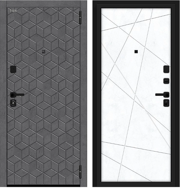 Надежная входная Дверь Браво Кьюб/SBlack Slate Art/Snow Art премиум класса по цене 39 901 руб. Большая толщина стали защитит от проникновения в ваш дом, квартиру или коттедж. Используется очень качественная фурнитура: замки, цилиндры, ручки, защелки. Покрытие и отделка двери изготовлено под внимательным контролем производителя. Дверь имеет долгий срок службы и гарантию.