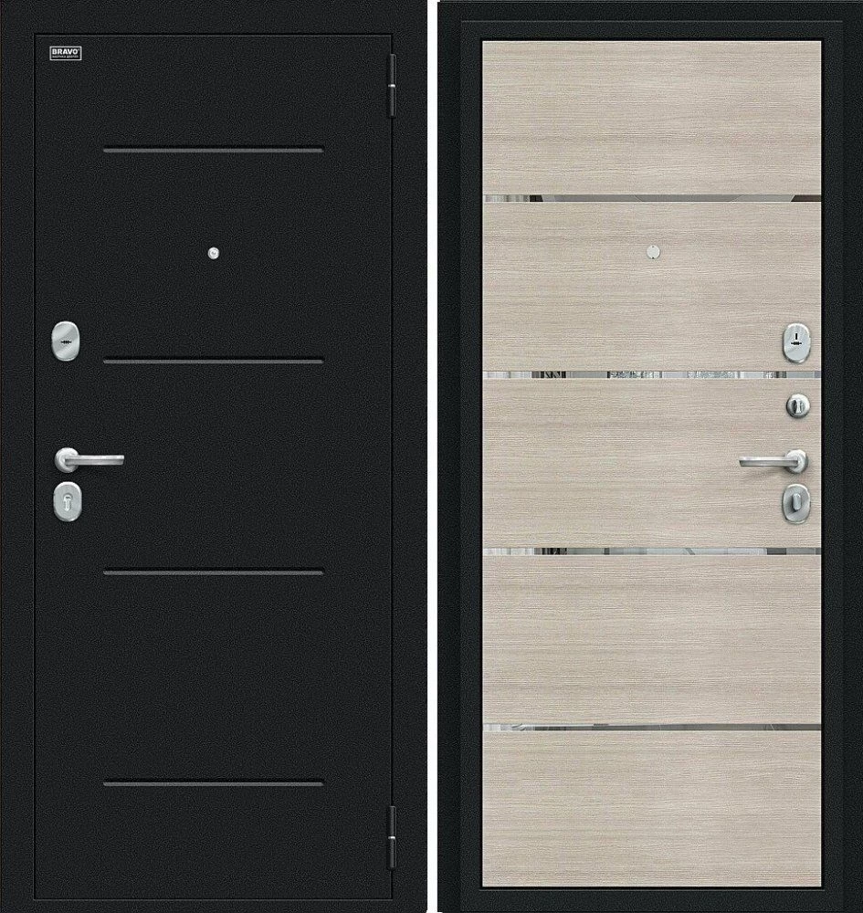 Надежная входная Дверь Браво Лайн Букле черное/Cappuccino Veralinga премиум класса по цене 30 621 руб. Большая толщина стали защитит от проникновения в ваш дом, квартиру или коттедж. Используется очень качественная фурнитура: замки, цилиндры, ручки, защелки. Покрытие и отделка двери изготовлено под внимательным контролем производителя. Дверь имеет долгий срок службы и гарантию.
