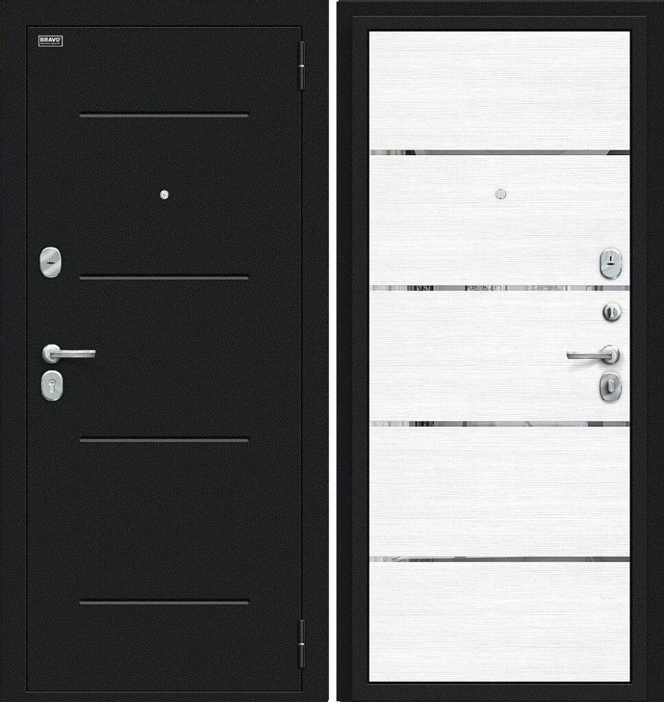 Надежная входная Дверь Браво Лайн Букле черное/Snow Melinga премиум класса по цене 30 621 руб. Большая толщина стали защитит от проникновения в ваш дом, квартиру или коттедж. Используется очень качественная фурнитура: замки, цилиндры, ручки, защелки. Покрытие и отделка двери изготовлено под внимательным контролем производителя. Дверь имеет долгий срок службы и гарантию.