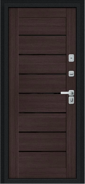 Дизайнерская входная Дверь Браво Thermo Техно Д2/BChrome Букле черное/Wenge Melinga класса Люкс с несколькими листами стали, звукоизоляцией и теплоизоляцией. Утепленный короб и полотно защитят от сквозняков и шумов. Модель не только надежная, комфортная, защищенная и высочайшего качества, но и очень красивая! Будет отлично сочетаться с интерьером дома, квартиры или офиса. Сейчас действует выгодное предложение по цене: 58 301 руб.