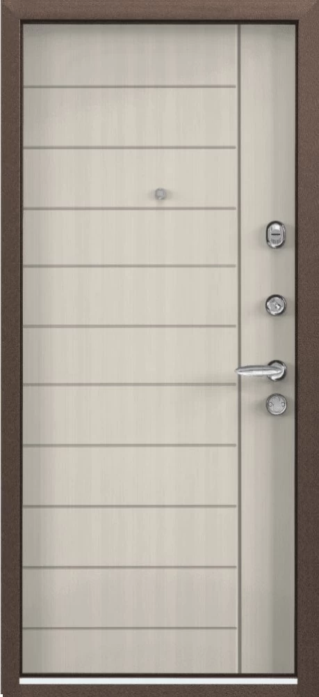 Надежная входная Дверь Цербер 3К(Чёрная) Горизонт Латте(Сменная панель) премиум класса по цене 43 051 руб. Большая толщина стали защитит от проникновения в ваш дом, квартиру или коттедж. Используется очень качественная фурнитура: замки, цилиндры, ручки, защелки. Покрытие и отделка двери изготовлено под внимательным контролем производителя. Дверь имеет долгий срок службы и гарантию.